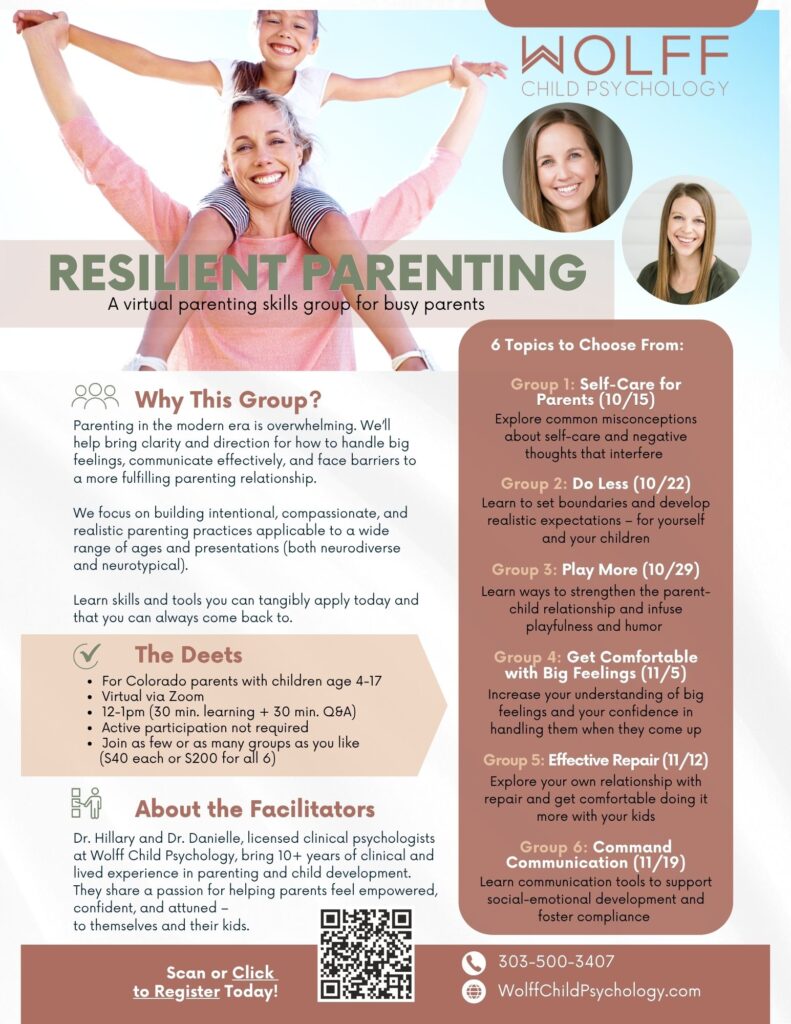 We focus on building intentional, compassionate, and realistic parenting practices applicable to a wide range of ages and presentations (both neurodiverse and neurotypical).